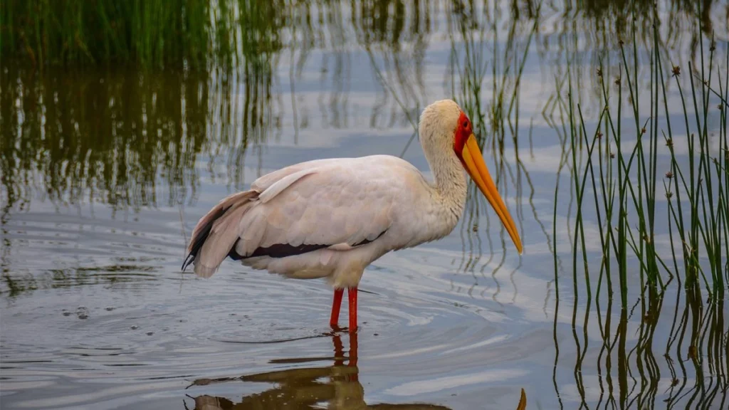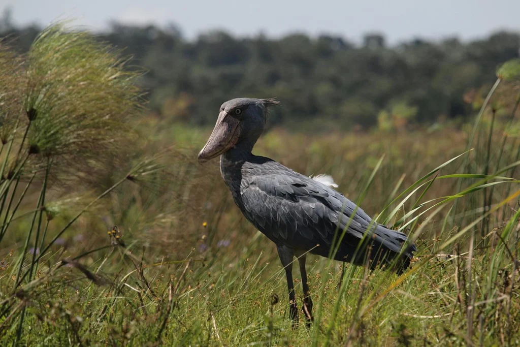 The shoebill stork in Akagera ranks among Africa’s most iconic birds. Standing over a meter tall with an enormous prehistoric bill, shoebills are notoriously difficult to find elsewhere, making Akagera’s reliable sightings particularly valuable. Patient observers on boat safaris or guided walks through northern papyrus swamps stand excellent chances of encountering these magnificent birds.